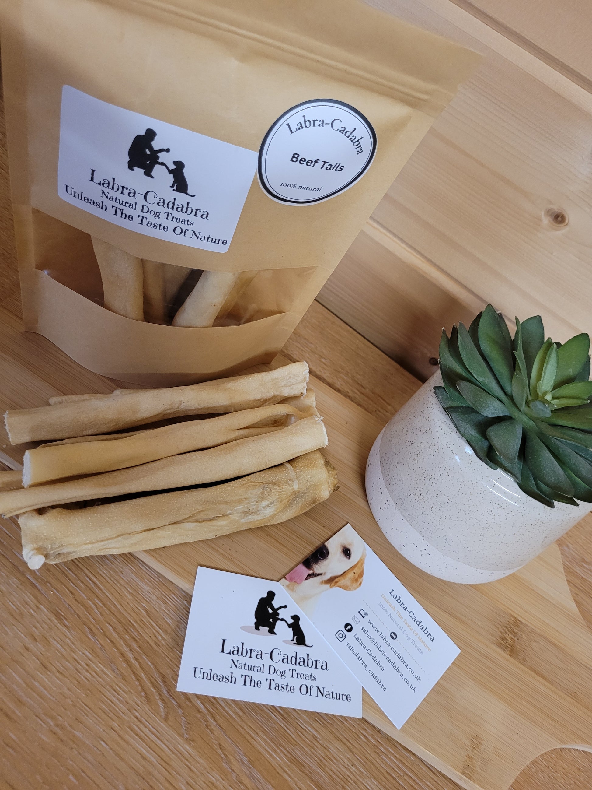 High in protein and low in fat, our 15cm Beef Tails are a delicious alternative to Pizzles. These longer-lasting chews are crunchy and chewy due to their natural cartilage and bone content, making them ideal for cleaning your dog's teeth and gums. This whole tail is the perfect natural dental chew for medium/large breeds.