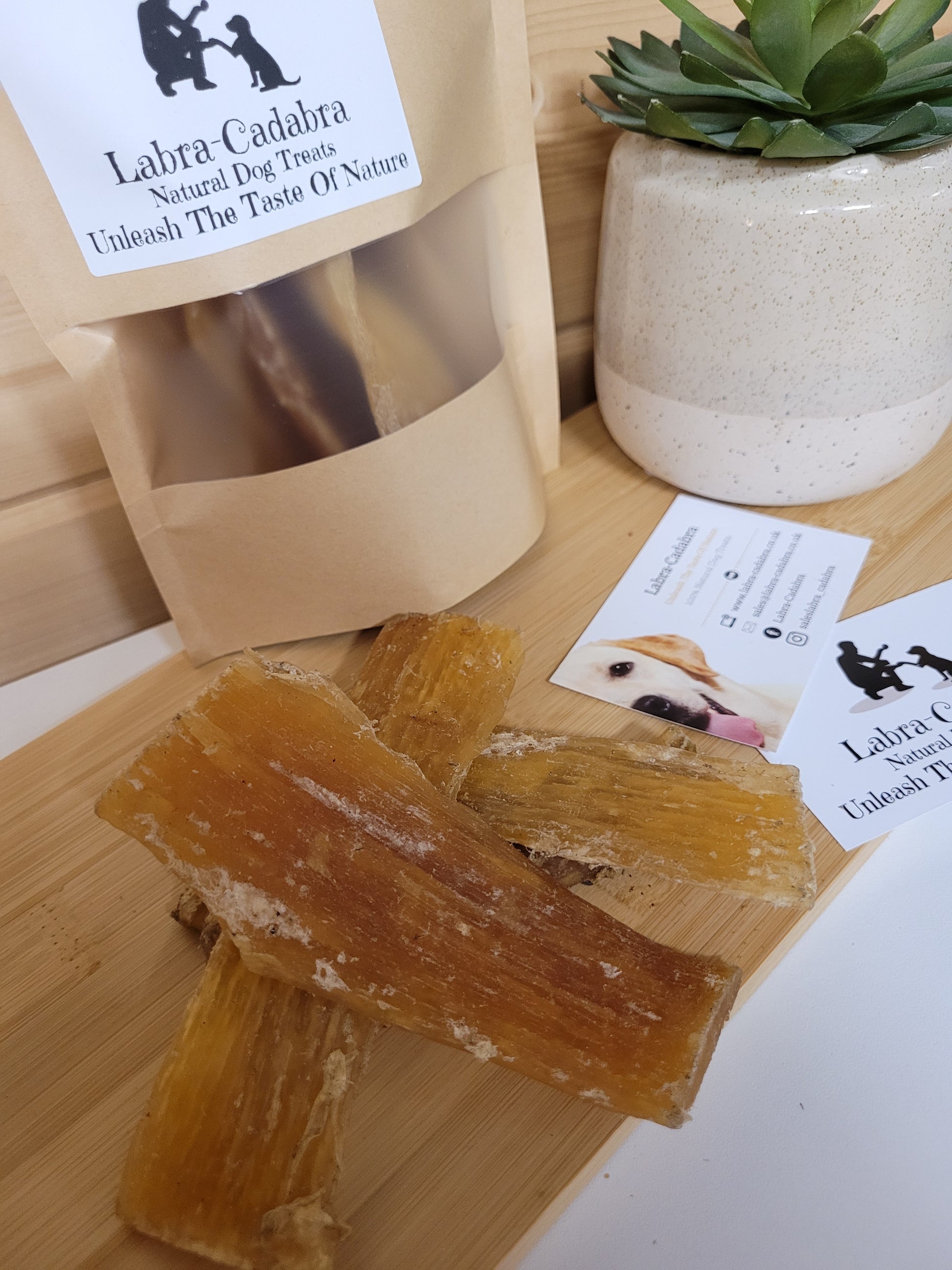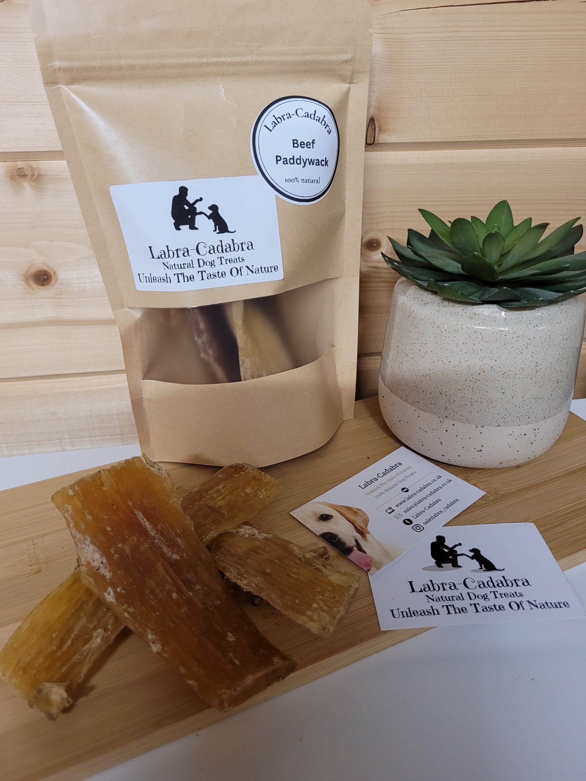 Paddywack is derived from the nuchal ligament that links a cow's head to its neck, creating a flavorful, durable chew suitable for dogs of all sizes. Our Paddywack is entirely natural grain and gluten free and also free from additives or preservatives, and boasts a high protein content. Through natural air-drying, the Paddywack retains its delicious flavor and nutritional value.