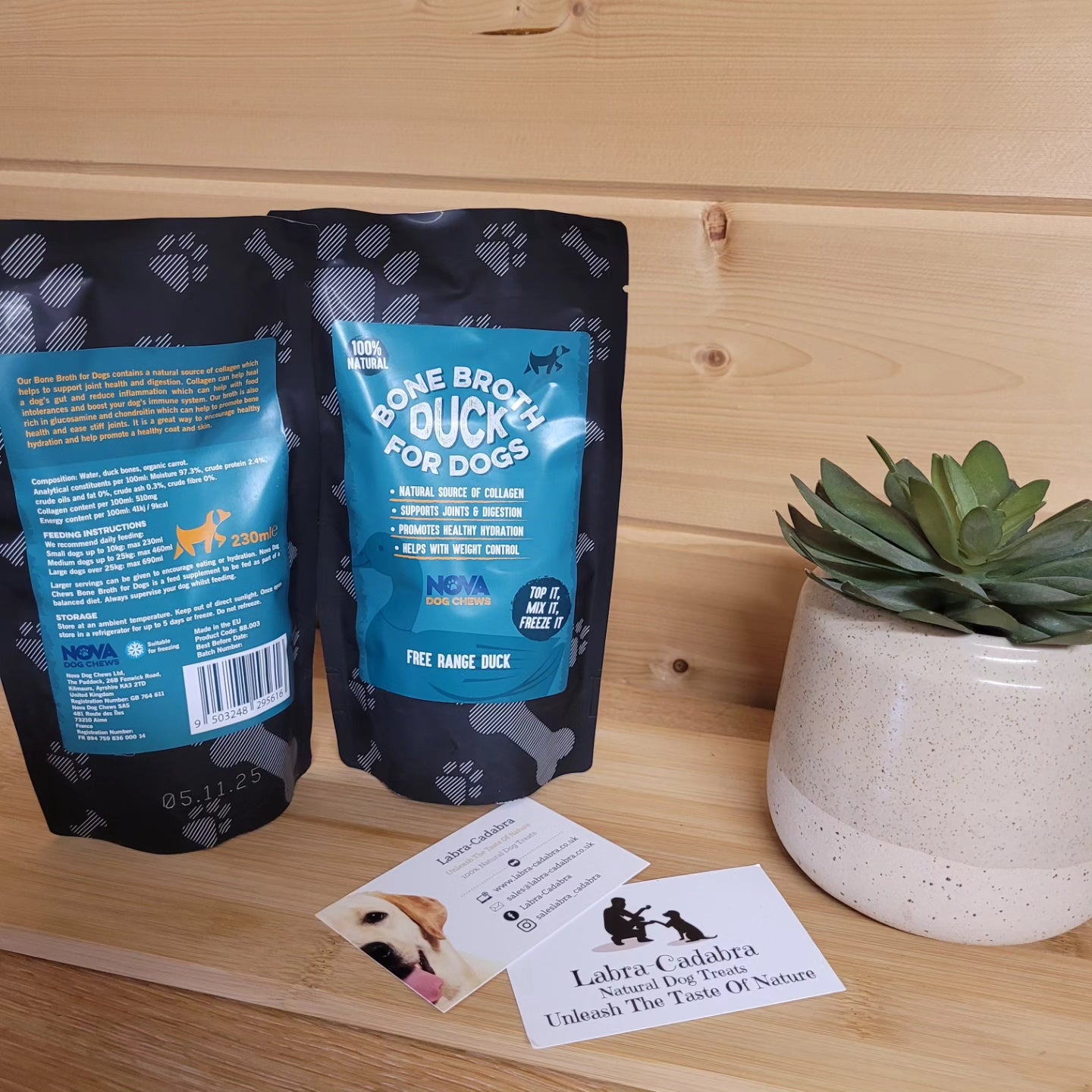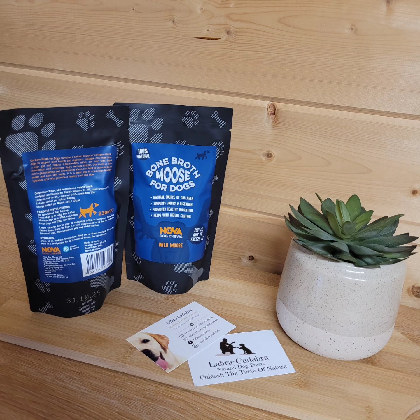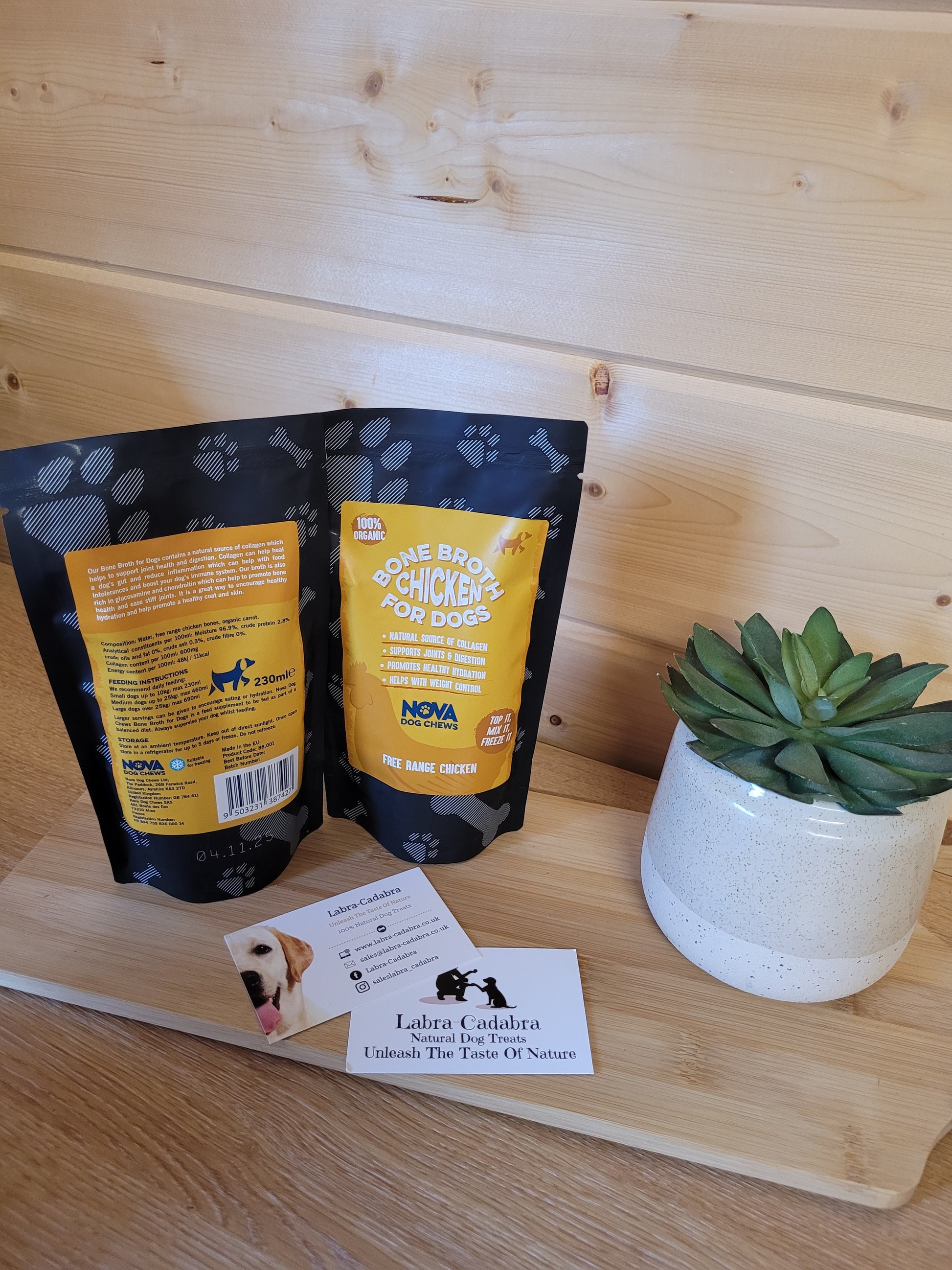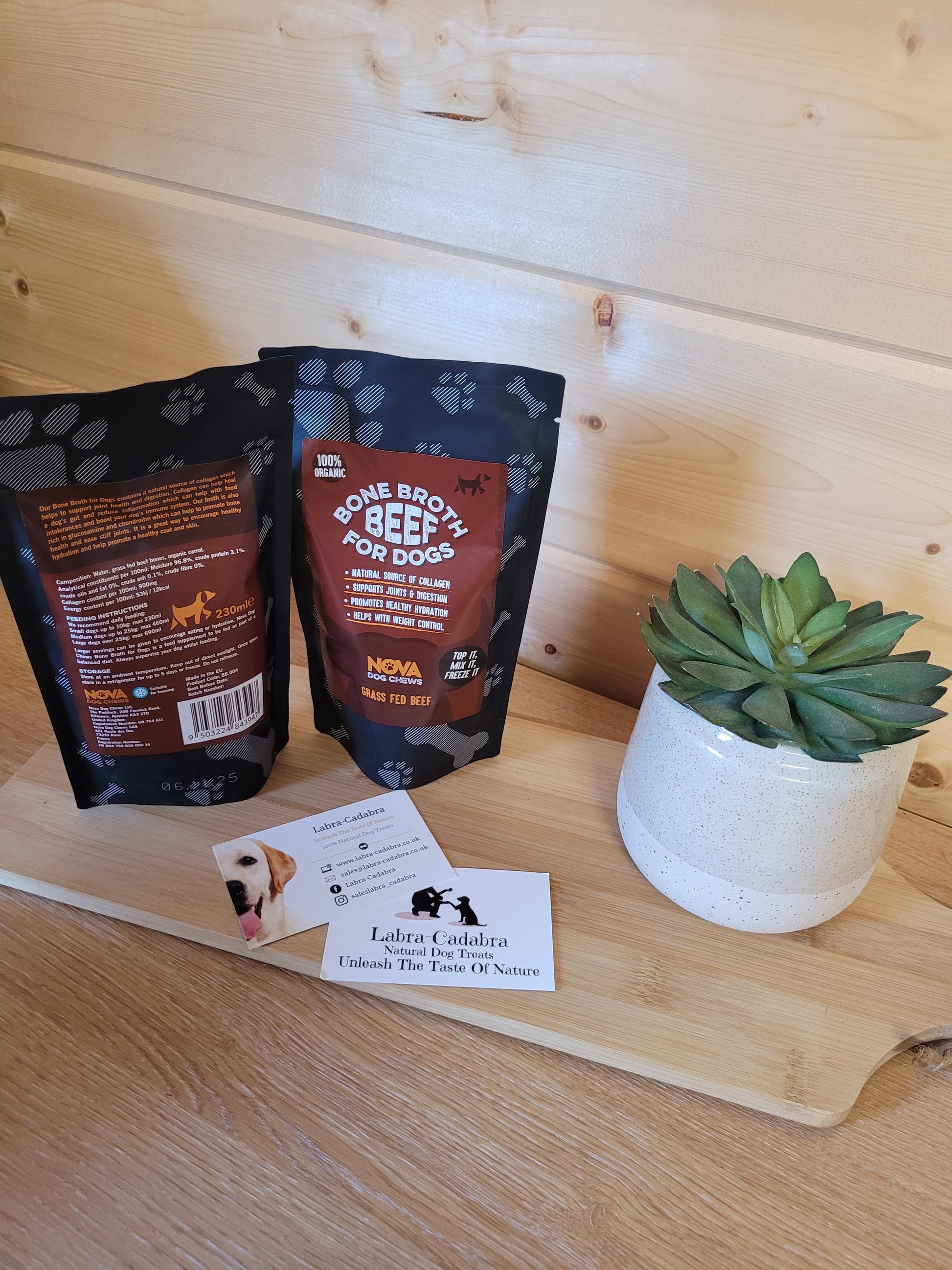Our bone broth for dogs contains a natural source of collagen which help to support joint health and digestion.