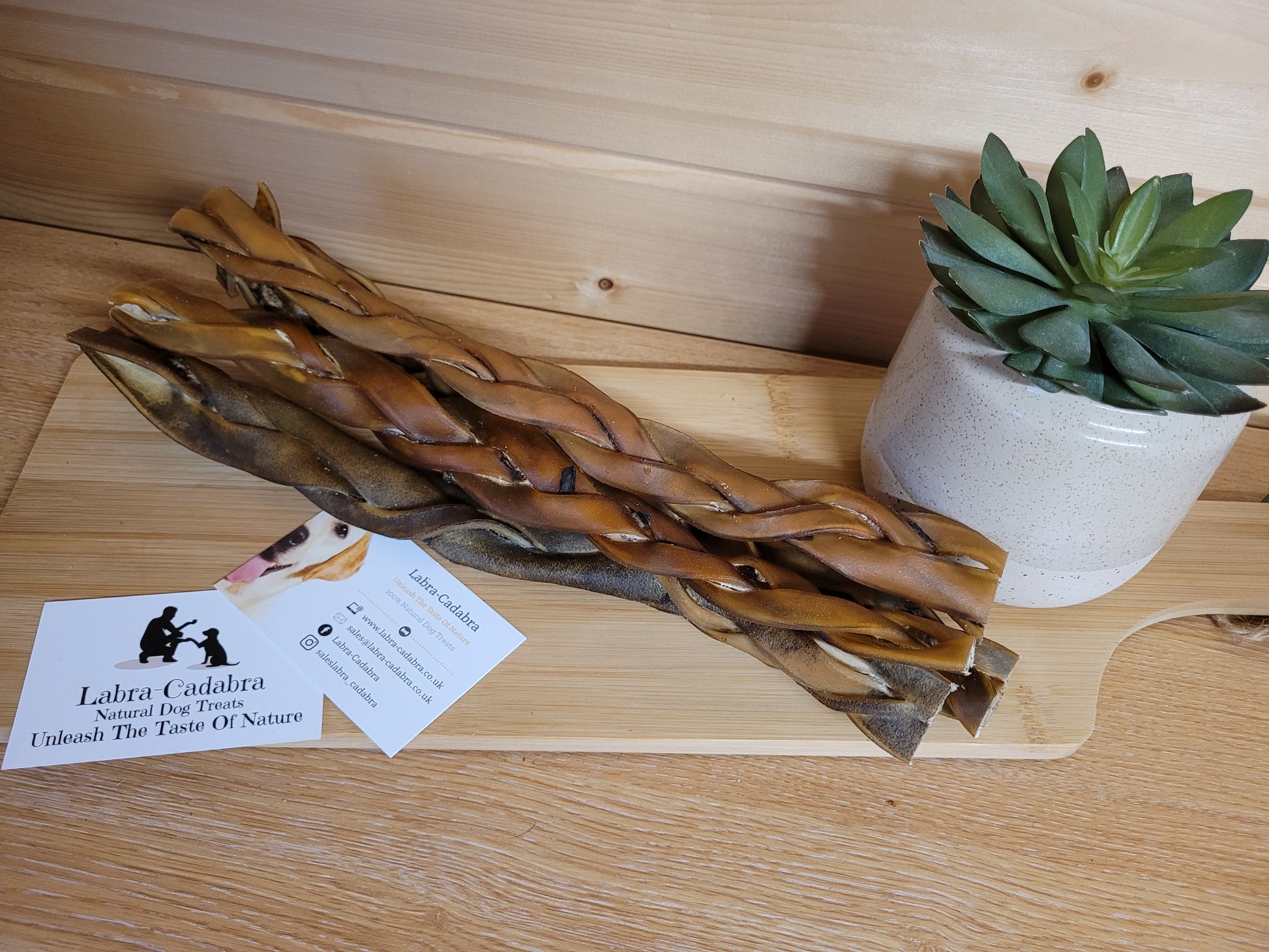 Ensure your dog stays content by treating them to one of our braided camel skin chews. Camel skin is known for being low in fat, hypoallergenic, and gentle on sensitive tummies.