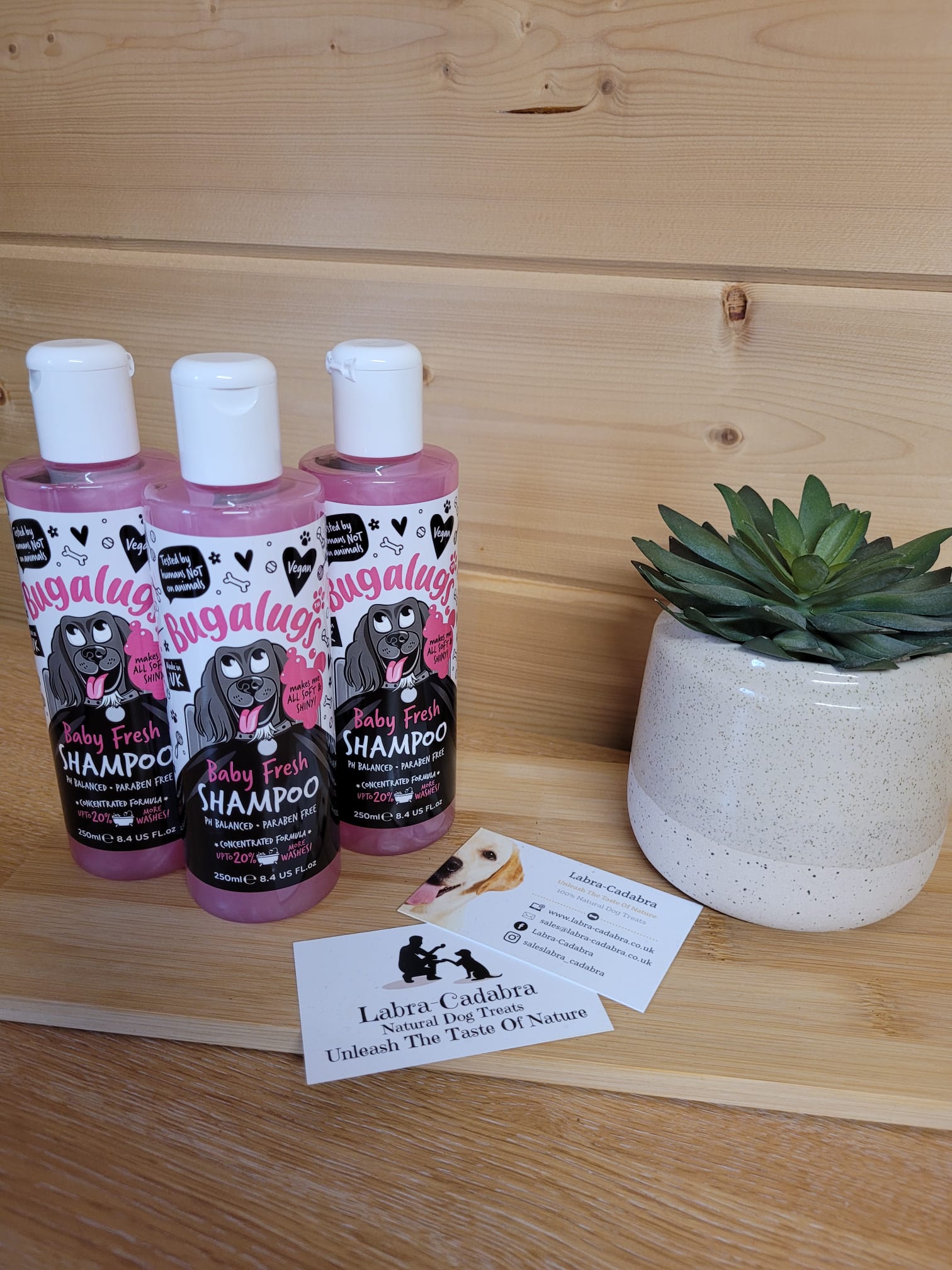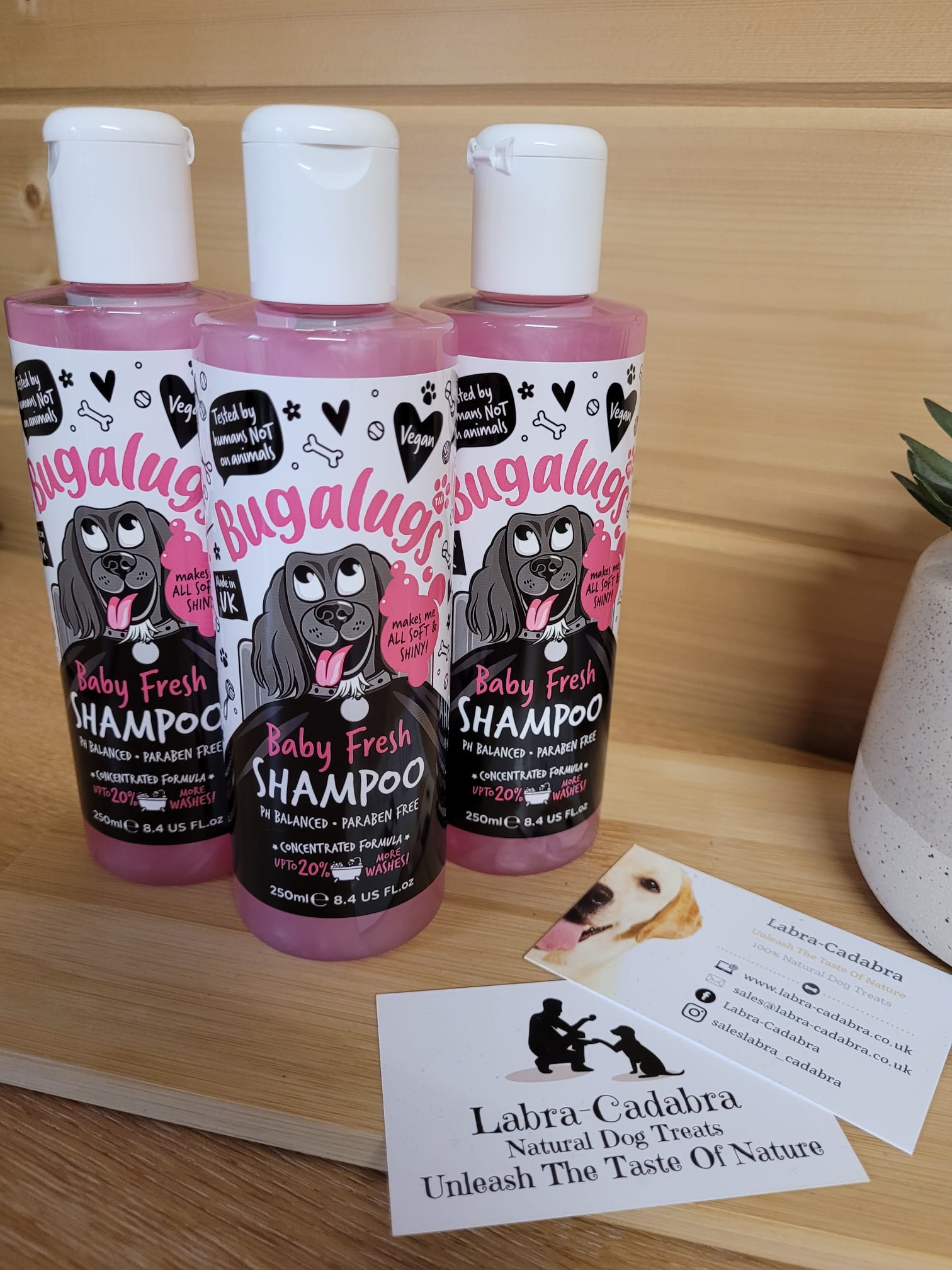 Our shampoo formula is vegan and made in the UK. Bugalugs’ Baby Fresh Dog Shampoo has become a firm favourite in salons and homes all across the country.