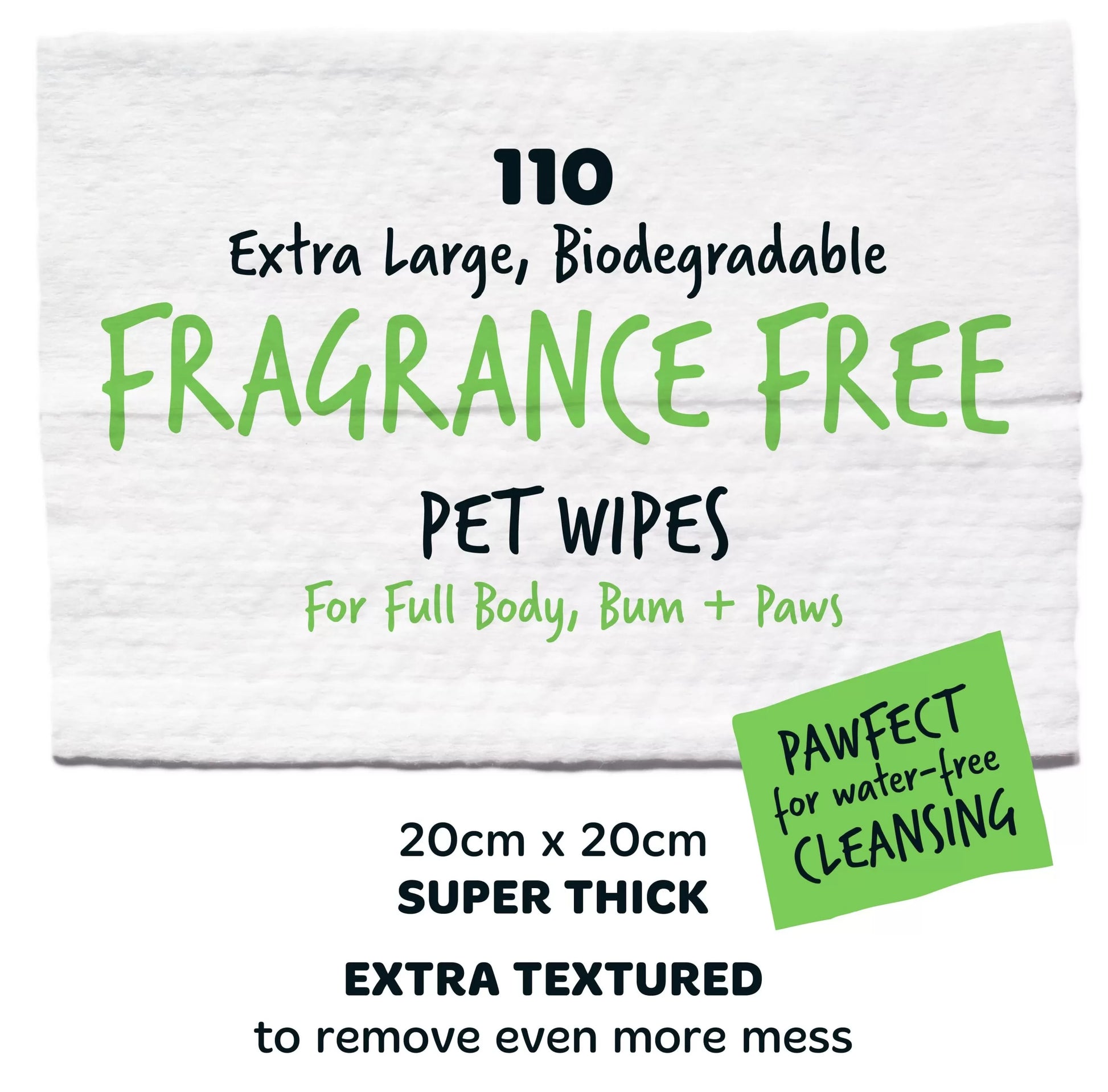 - 110 wipes: Super value, thick, textured and extra-large dog wipes – 20cm x 20cm perfect for full body, ears, eyes, bum & paws. Use as puppy wipes, pet wipes for cats, pet wipes dog and on small animals