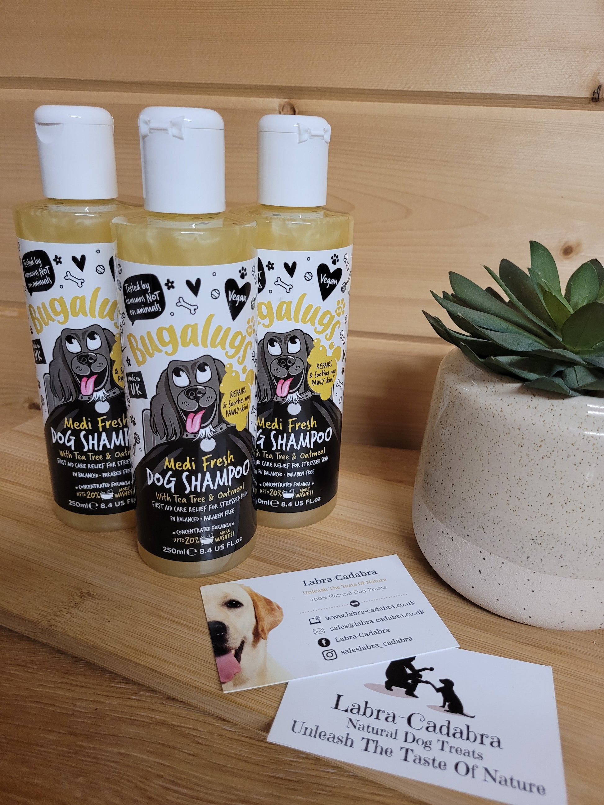 If your dog is suffering with itchy, pawly skin then the Bugalugs Medi Fresh itchy skin dog shampoo is what you’ve been looking for. This product contains cooling tea tree, aloe vera, colloidal oatmeal and other essential oils that aid to soothe and relax tired and strained muscles. Not only this, but this wonderous product can help to clean minor wounds, grazes and calm pawly skin.