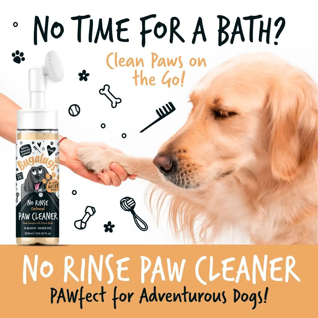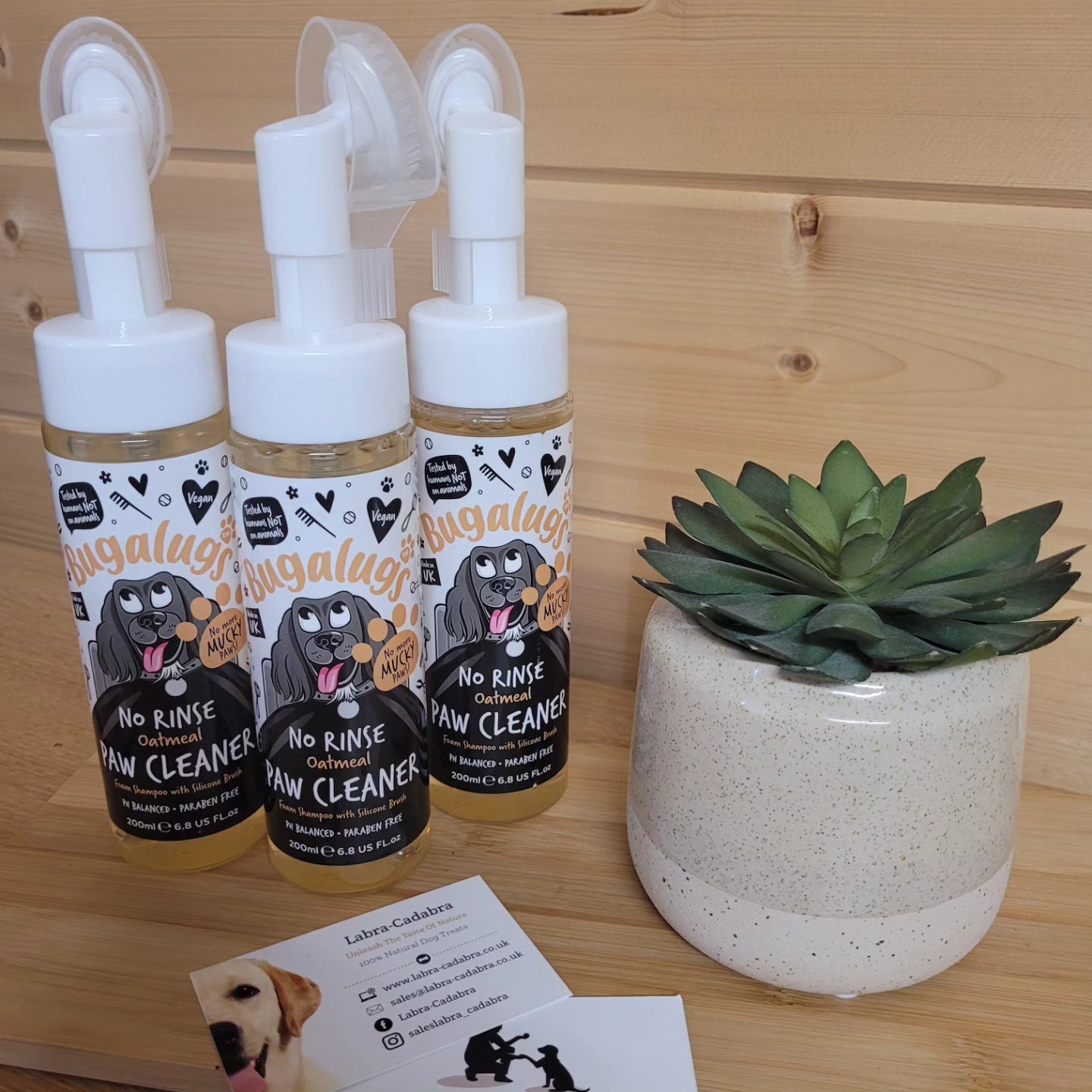 What sets Bugalugs paw cleaner apart is our no rinse foam formula, it eliminates the need for messy baths, or water. The easy-to-use foam action pump and brush allows you to simply pump the foam out onto the brush and apply it directly to the paws – it is that simple! Its compact size makes it ideal for on-the-go adventures, whether you are hiking camping or simply enjoying a local stroll.