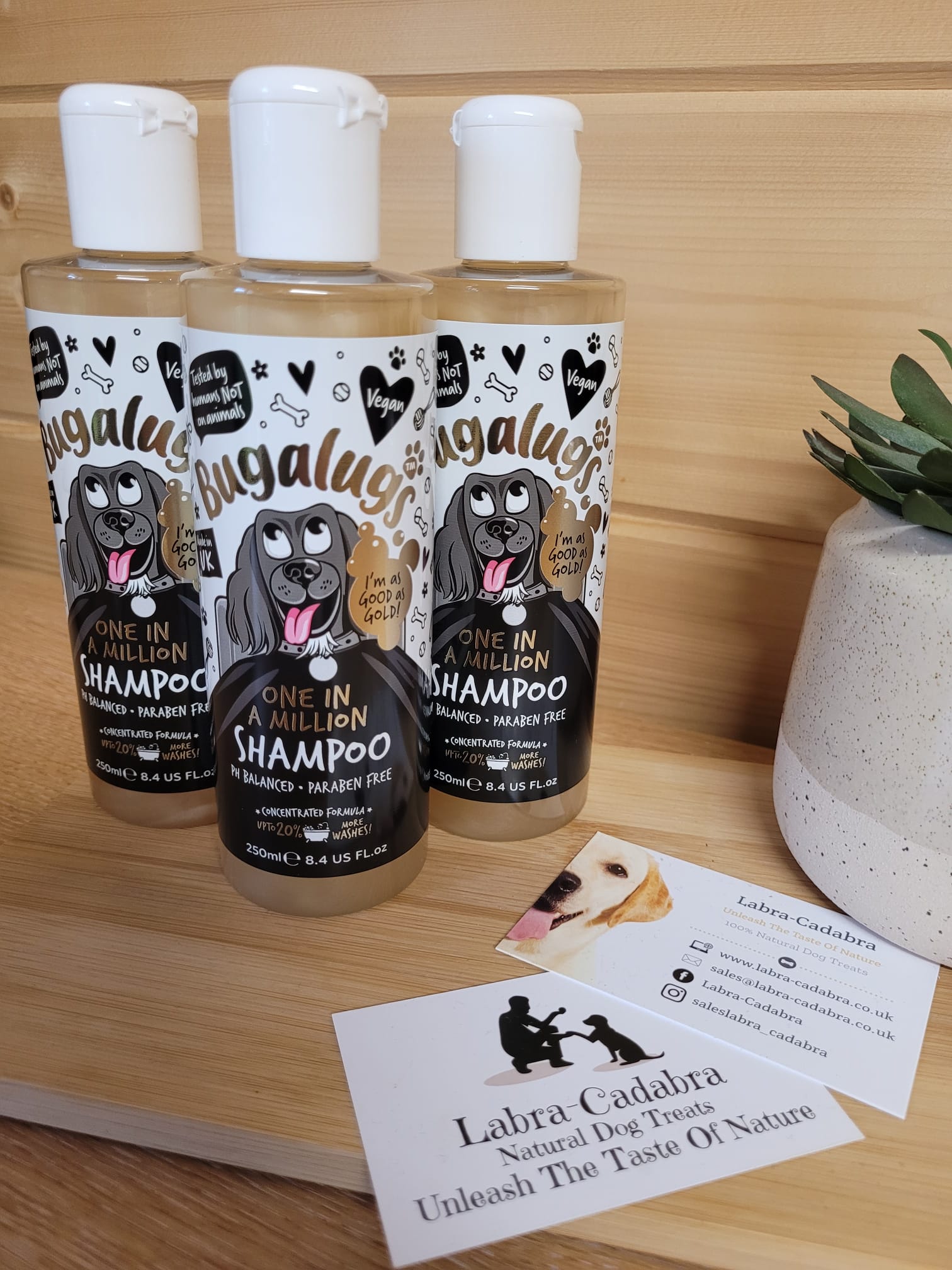 A gentle, pH balanced, designer dog shampoo with a distinctive ‘One In A Million’ fragrance that cleans, conditions, and moisturises. Perfect for removing puppy and doggy odours, Bugalugs shampoo cleanses deeply and will leave the coat clean, plush and smelling irresistible! This shampoo is vegan, cruelty free and gentle on skin making it perfect for puppies 8 weeks and over.