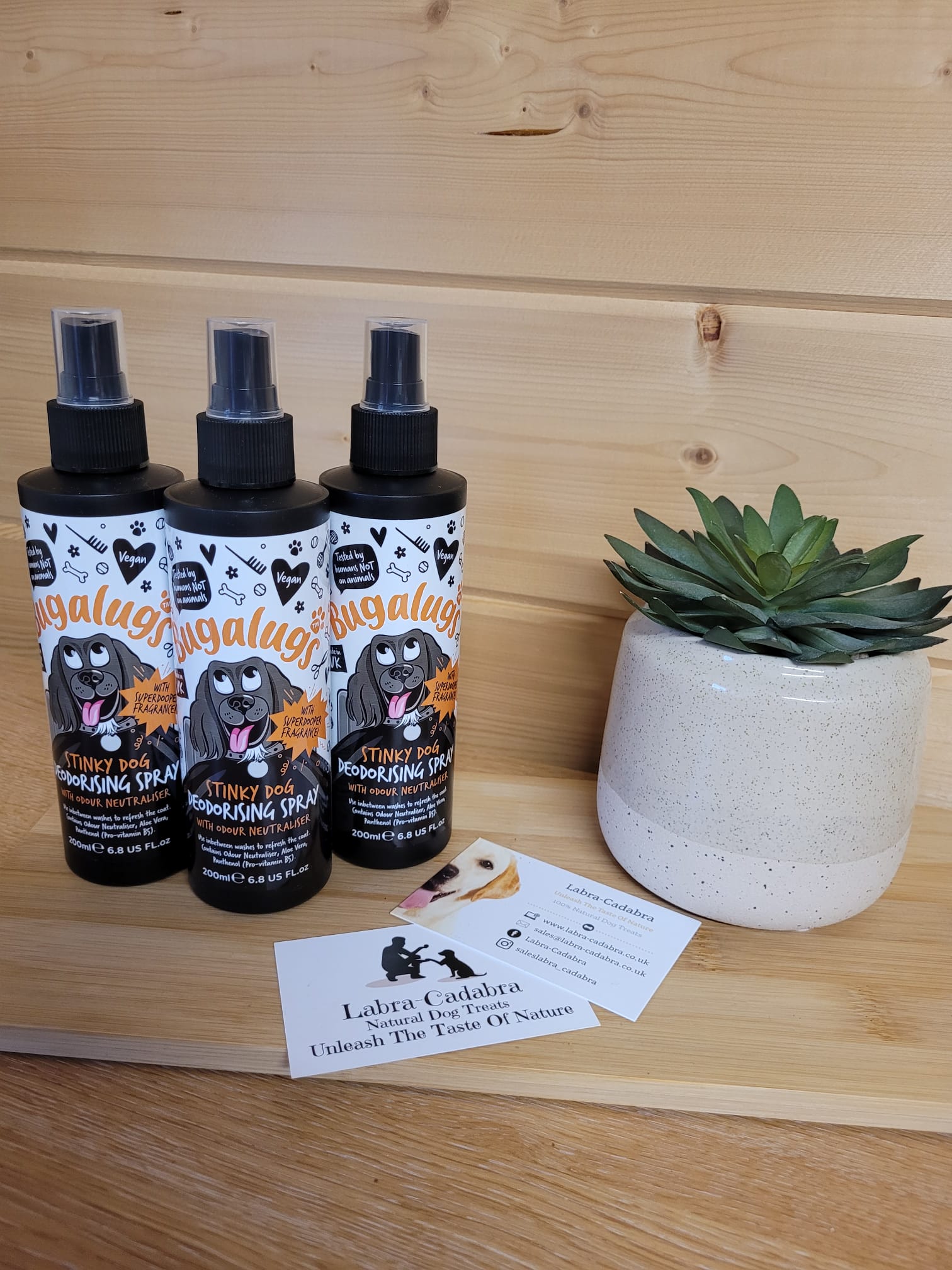Stinky dog deodorising spray contains odour neutraliser that eliminates malodours with a long-lasting fresh fragrance.