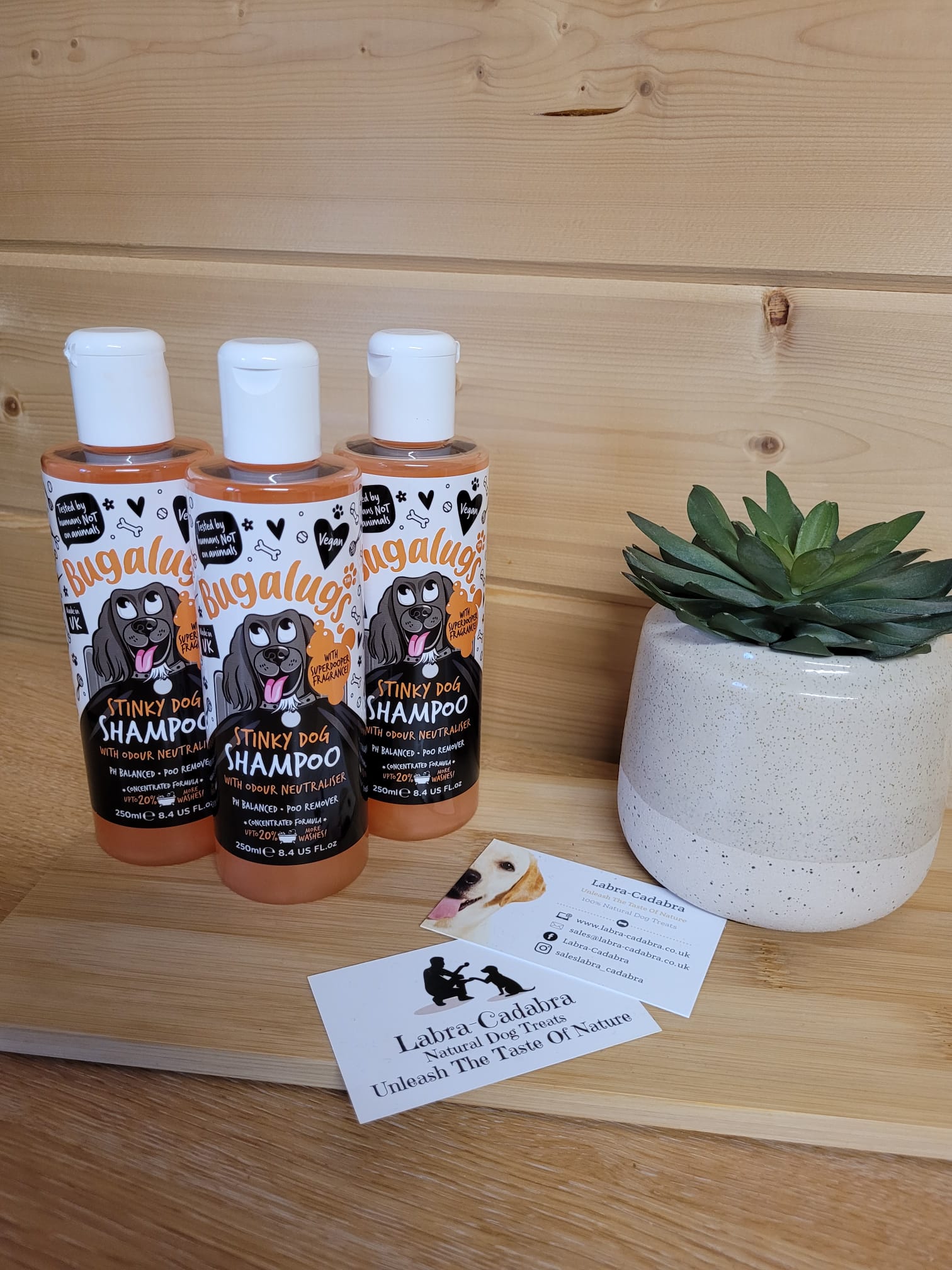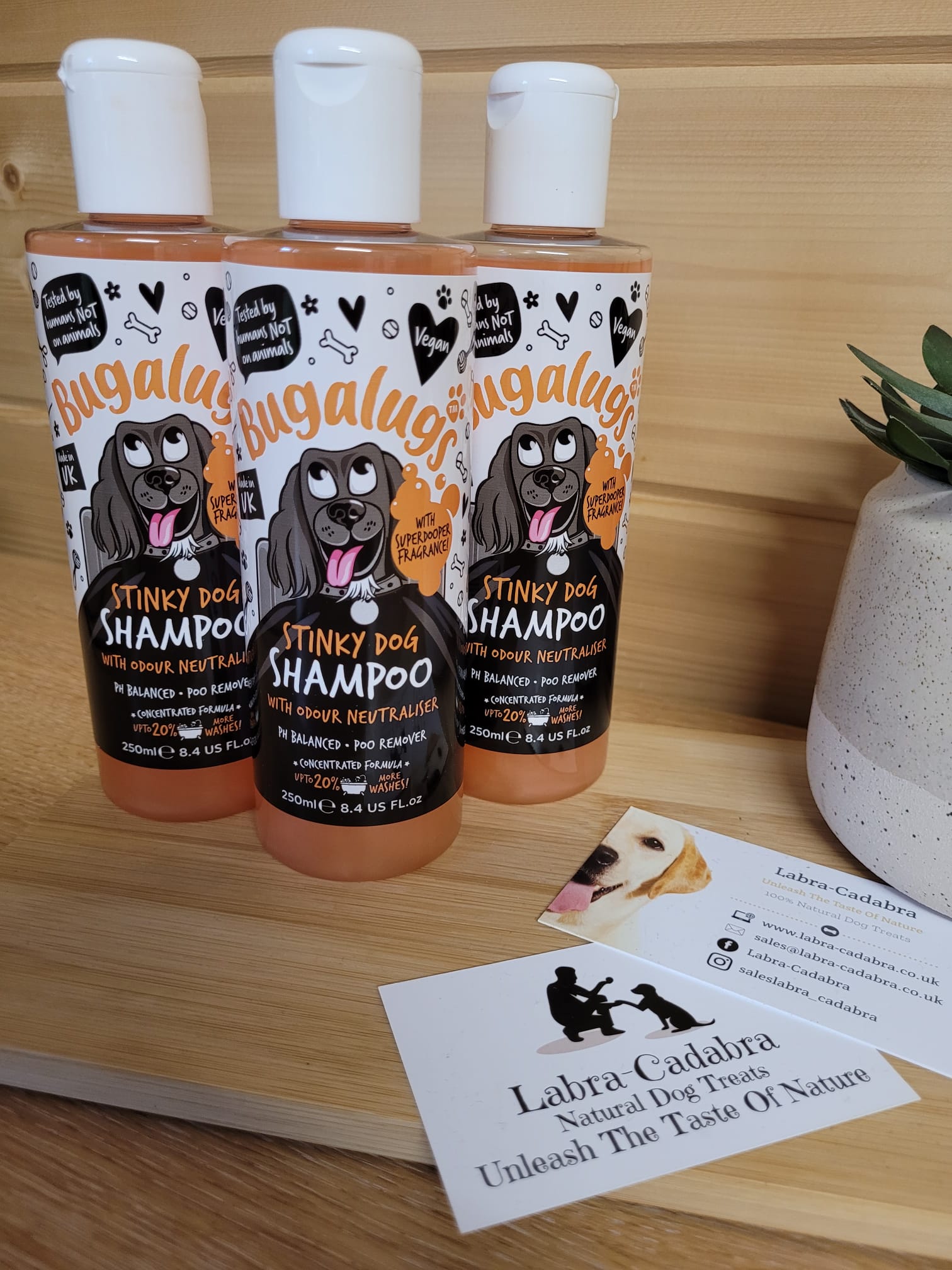 This rich lathering shampoos long lasting fragrance has made this dog shampoo for smelly dogs a favourite in salons and homes all around the world! Suitable for puppies over 8 weeks. Bugalugs stinky dog shampoo is made with water from the Lake District. Suitable for all coat types. Can be diluted at ratio 10:1.