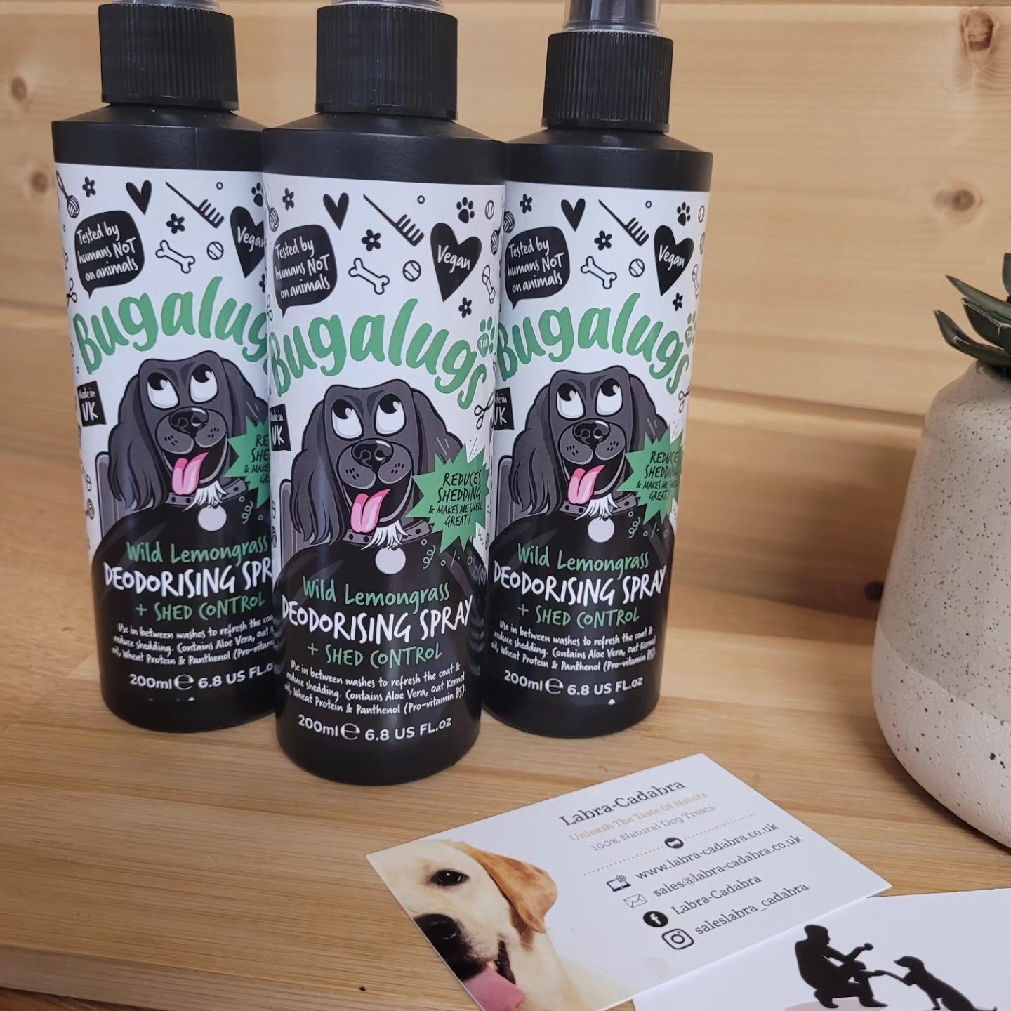Bugalugs dog shed control spray refreshes the coat and contains odour neutraliser which eliminates malodours rather than masking leaving the coat clean, plush and smelling irresistible! Dog deodorant spray and conditioner helps soothe and nourish sensitive skin with long lasting wild lemongrass scent which makes this dog grooming products a favourite dog perfume spray in professional salons and homes all around the world! Suitable for puppies over 8 weeks. Made with water from the Lake District and suitable for all coat types.