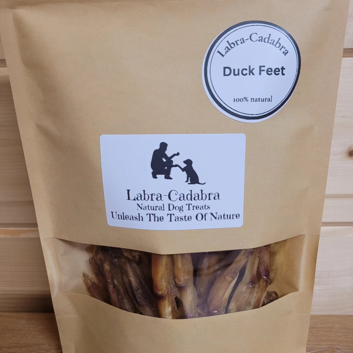 Our British Duck Feet are delicious natural treats rich in chondroitin to support joint health. Ideal as dental chews for small dogs and as a satisfying crunchy snack for larger breeds! Our dehydrated treats are a favourite among our canine customers.