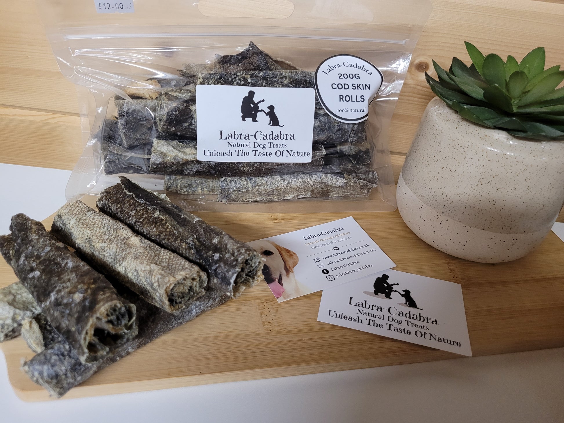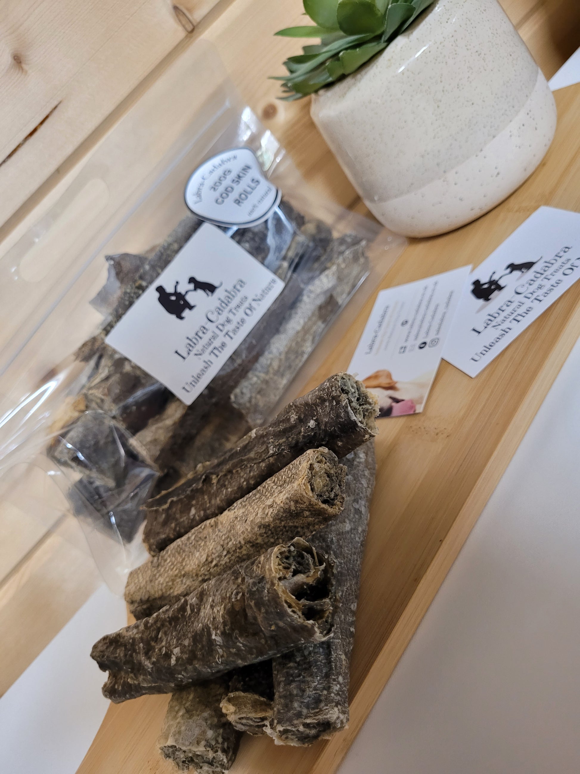 Introducing our Fish Skin Rolls. These are made from all-natural, high-quality fish skin to provide your dog with a tasty and nutritious treat.