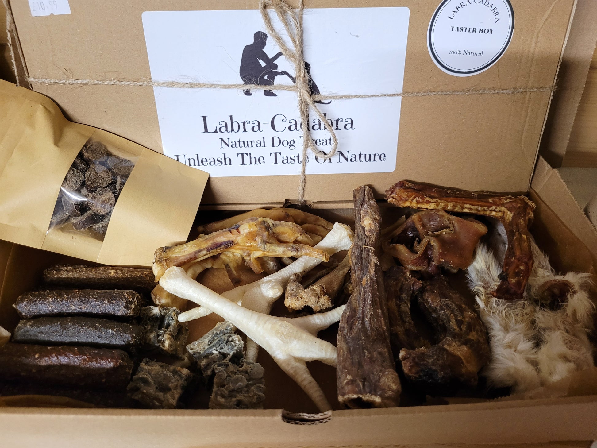 Introducing our TASTER Boxes, perfect for those who are tired of purchasing dog treats filled with additives.